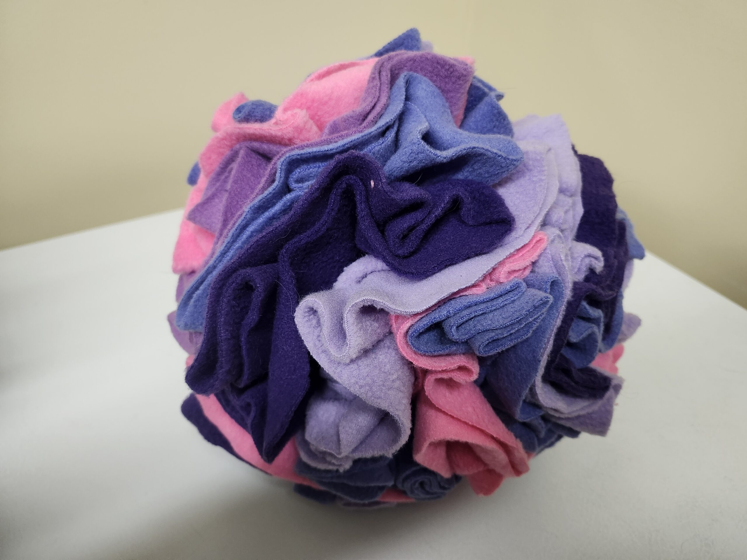 Balle en tissu serré permettant à votre chien d’y chercher des gâteries.